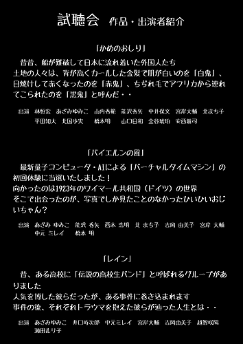 トップページ > イベント情報 > オーディオドラマの試聴会