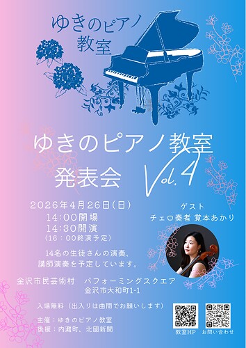 トップページ > イベント情報 > ゆきのピアノ教室 発表会 Vol. 4
