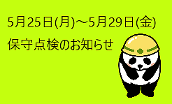 トップページ > イベント情報 > 5/25~29保守点検のお知らせ